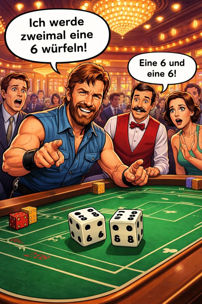 In memoriam – Chuck Norris, dem Actioner der Actioner! Wenn Chuck Norris im Casino würfelt, liegt eines auf der Hand bzw. dem Würfeltisch: die Augenanzahl der Würfel!