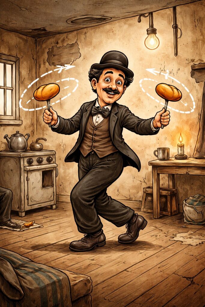 Keiner konnte so schön mit Brötchen tanzen wie Charlie Chaplin in dem Film „Goldrausch“. Sein Brötchen-Tanz beinhaltet die perfekten Kreisbewegungen!