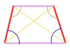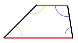 - Winkel: benachbarte Winkel zur oberen oder unteren Basis ergänzen sich zu 180°