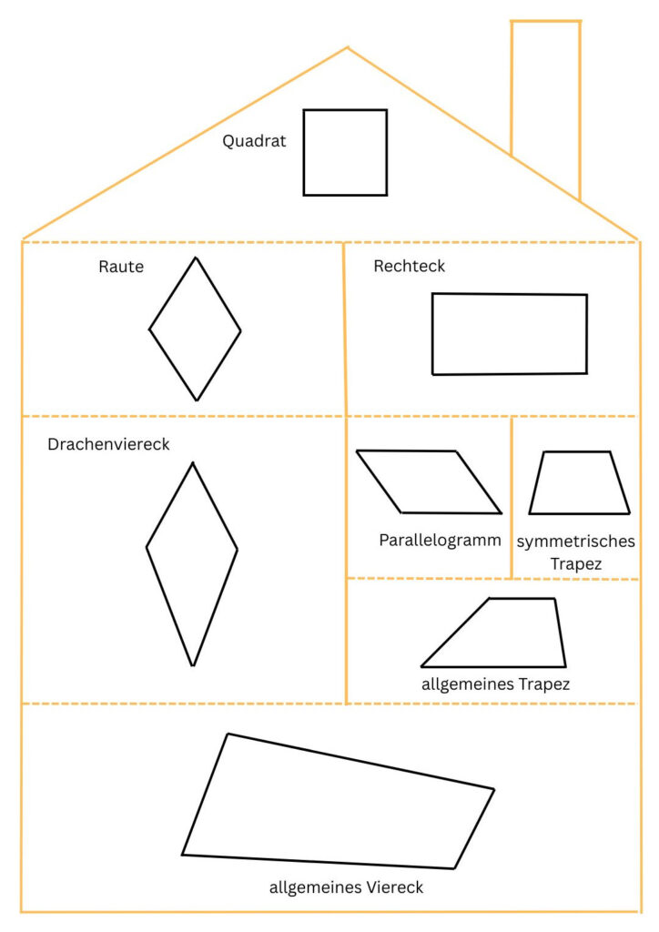 Im Haus der Vierecke liegt eine sogenannte hierarchische Struktur vor. Von oben nach unten nehmen die besonderen Eigenschaften der Vierecke ab bzw. von unten nach oben nehmen diese zu.