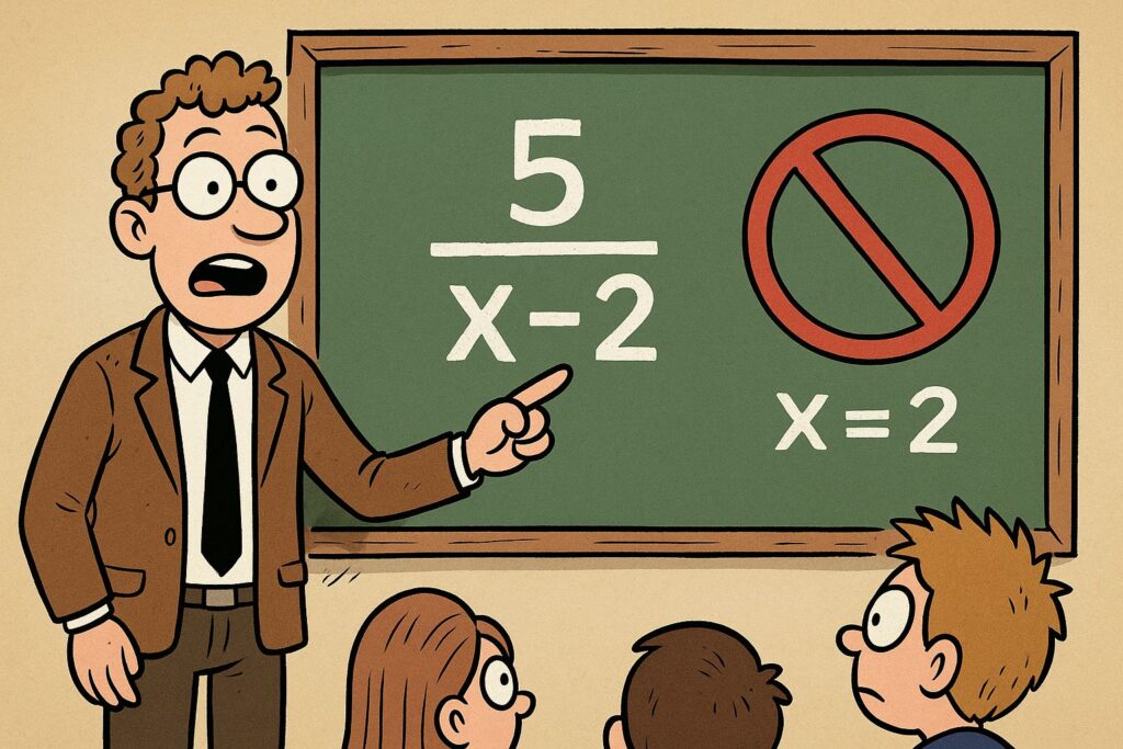 Konkret heißt das: Wenn beispielsweise ein x = 5 ist, darf ein y nicht auch gleich 5 sein. Ist das nämlich der Fall, dann ist der Term an dieser Stelle nicht definiert.