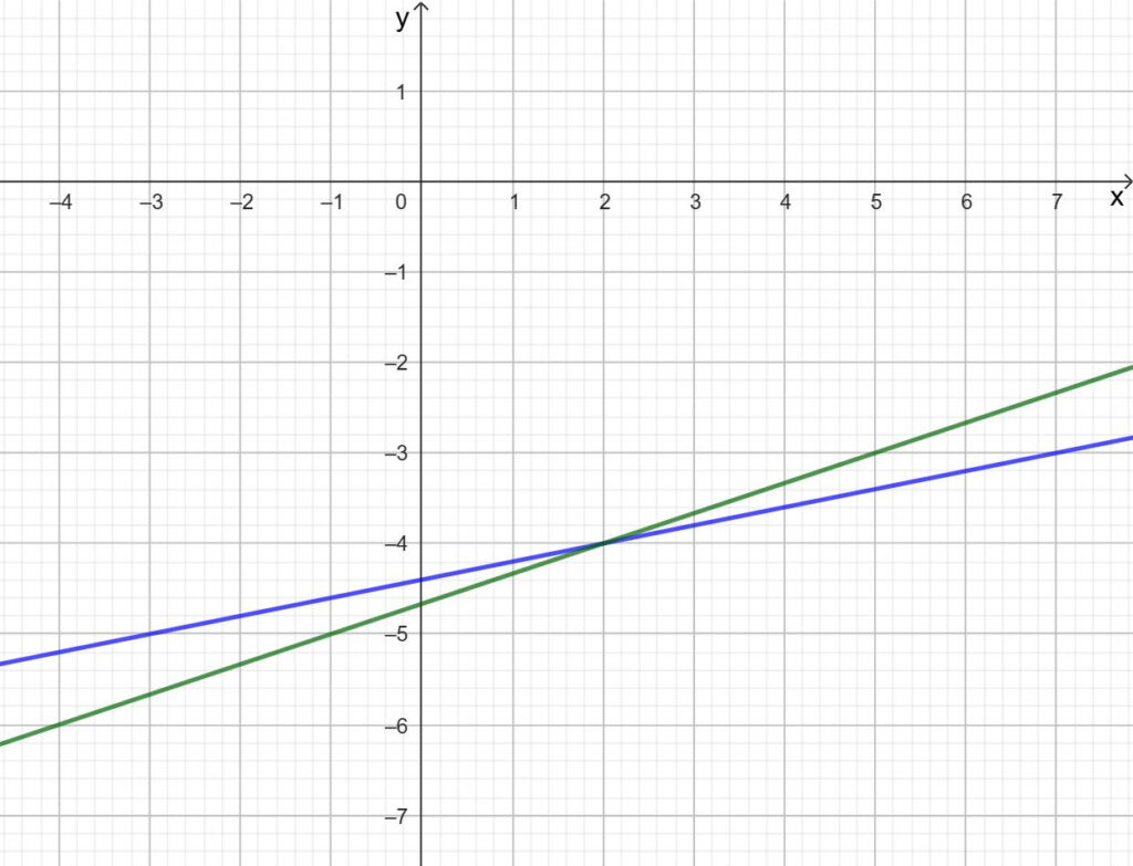 Der Schnittpunkt liegt hier bei S (2|–4) und bestätigt somit die Lösung L = {(2|–4)}.