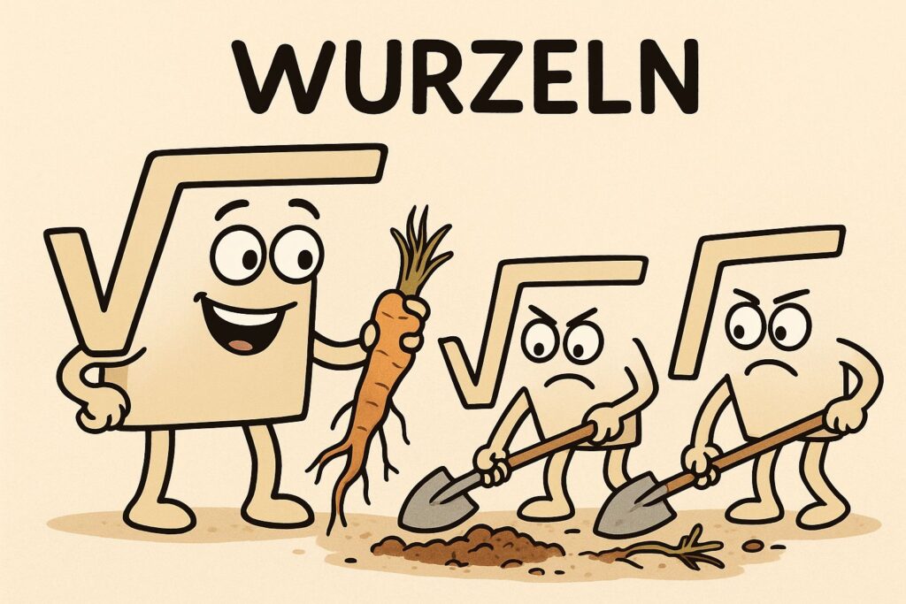 Bei einer Wurzel denkt man entweder etwa an eine Pflanzenwurzel, wie die beispielsweise von einem Baum, oder an irgendein Wurzelgemüse wie etwa Karotten, Radieschen oder Pastinaken. Irgendwann gibt es aber diesbezüglich auch in der Schule im Fach Mathe eine „Horizonterweiterung“. Wurzeln findet man nämlich nicht nur im Boden vor, sondern diese gibt es auch in der Mathematik. Wurzeln sind in der Mathematik nämlich hierfür da, um eine Potenz aufzulösen, bzw. das Wurzelziehen stellt die umgekehrte Rechenoperation zum Potenzieren dar. Interessanterweise stammt das in Mathe gebräuchliche Wort Wurzel tatsächlich von der Boden-Wurzel her. Das zeigt sich in der lateinischen Vokabel, dem Radizieren, dem Wurzelziehen. „Radizieren“ stammt nämlich von dem lateinischen Wort „radix“ her – der (Pflanzen-)Wurzel. Aber mal ehrlich: Das Wurzelzeichen sieht doch wirklich auch aus wie eine Wurzel – wie eine Zahnwurzel 🙂 .