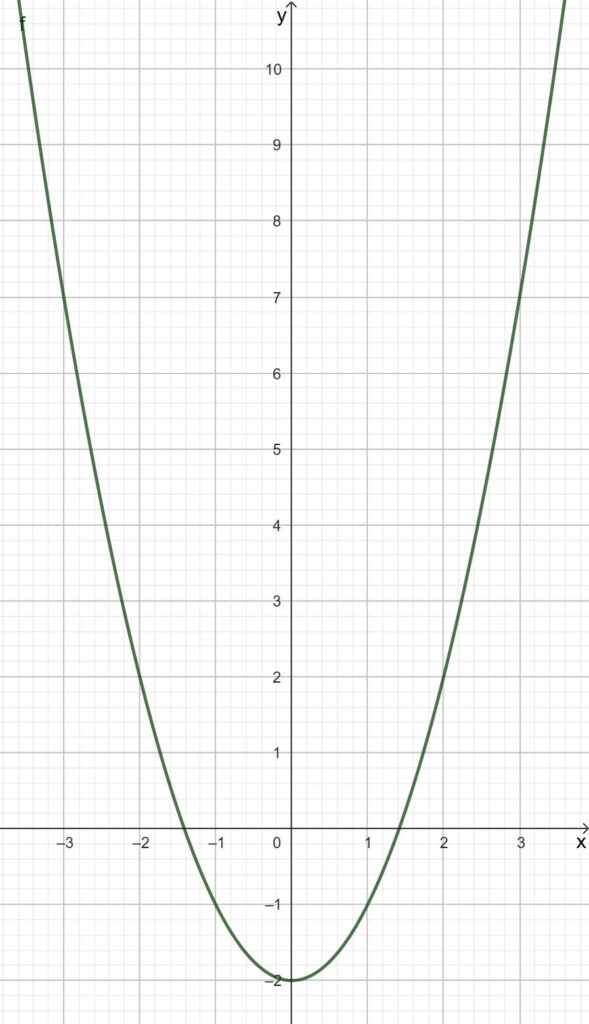 für x = 0: y = (0)² – 2 = 0 – 2 = –2