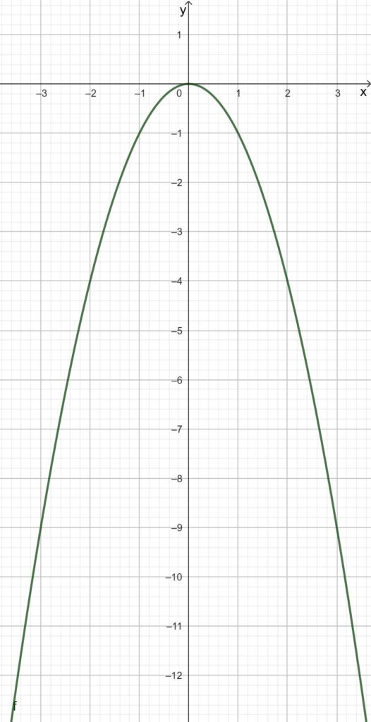 Wie man sieht, verläuft die Funktion nur im negativen Bereich. Die Zahl Null ist aber auch dabei. Daher ist hier: W = ℝ0– (das heißt: alle negativen reellen Zahlen inklusive der Null).