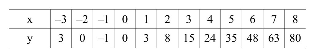 für x = 8: y = (8)² – 2 = 64 – 2 = 62