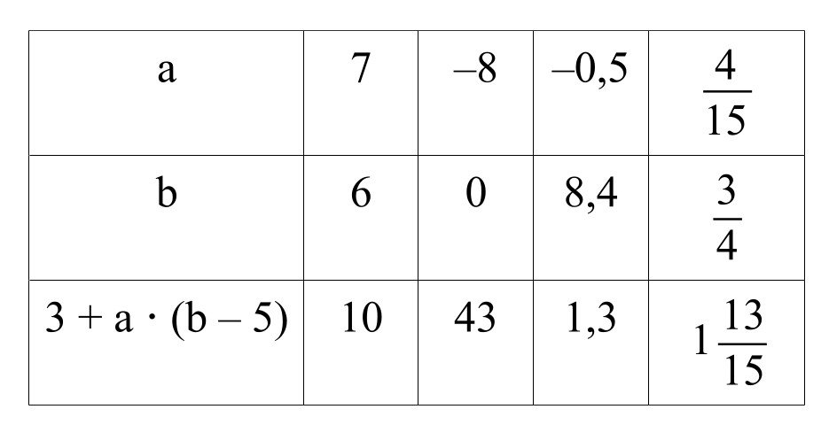 4. Mathematik-Nachhilfe-Aufgabe: Ermittle den Wert des Terms 3 + a · (b – 5) für: